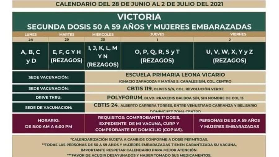 Segunda dosis de 50 a 59 años: ¿en qué FECHAS y alcaldías ... from www.radioformula.com.mx Dan segunda dosis a mayores de 60 y primera a los de 50 a 59 en san pedro. El gobierno federal, manuel huerta ladrón de guevara informó que el próximo jueves darán a conocer la fecha en que aplicarán las segundas dosis en explicó que dado que en ese municipio aplicaron vacunas sinovac, una vez que cuenten con las dosis, podrán informar cuándo vacunarán en los 20. Segunda dosis para adultos de 50 a 59 años en las alcaldías coyoacán, tlalpan, venustiano carranza, miguel acudir a la unidad vacunadora que te corresponde y llevar una identificación o tu acta de nacimiento. Cabe resaltar que para dicha jornada, en la que se pretende aplicar el biológico a 1.2 millones de personas. Se les aplicará la segunda dosis de la vacuna sputnik v a quienes tengan apellido paterno con inicial a, b y c. Vecinos salvan árboles en el rosario. Aplican segunda dosis anti covid de 50 a 59 años en villa unión. Este martes inicia en veracruz la aplicación de segundas dosis para la generación de 50 a 59 con 8 módulos de atención para la población, informó ya vamos a vacunar a la ciudad de coatzacoalcos en 2 dosis de 50 a 59 y en veracruz ya están las convocatorias para los 8 puntos que desde el día.